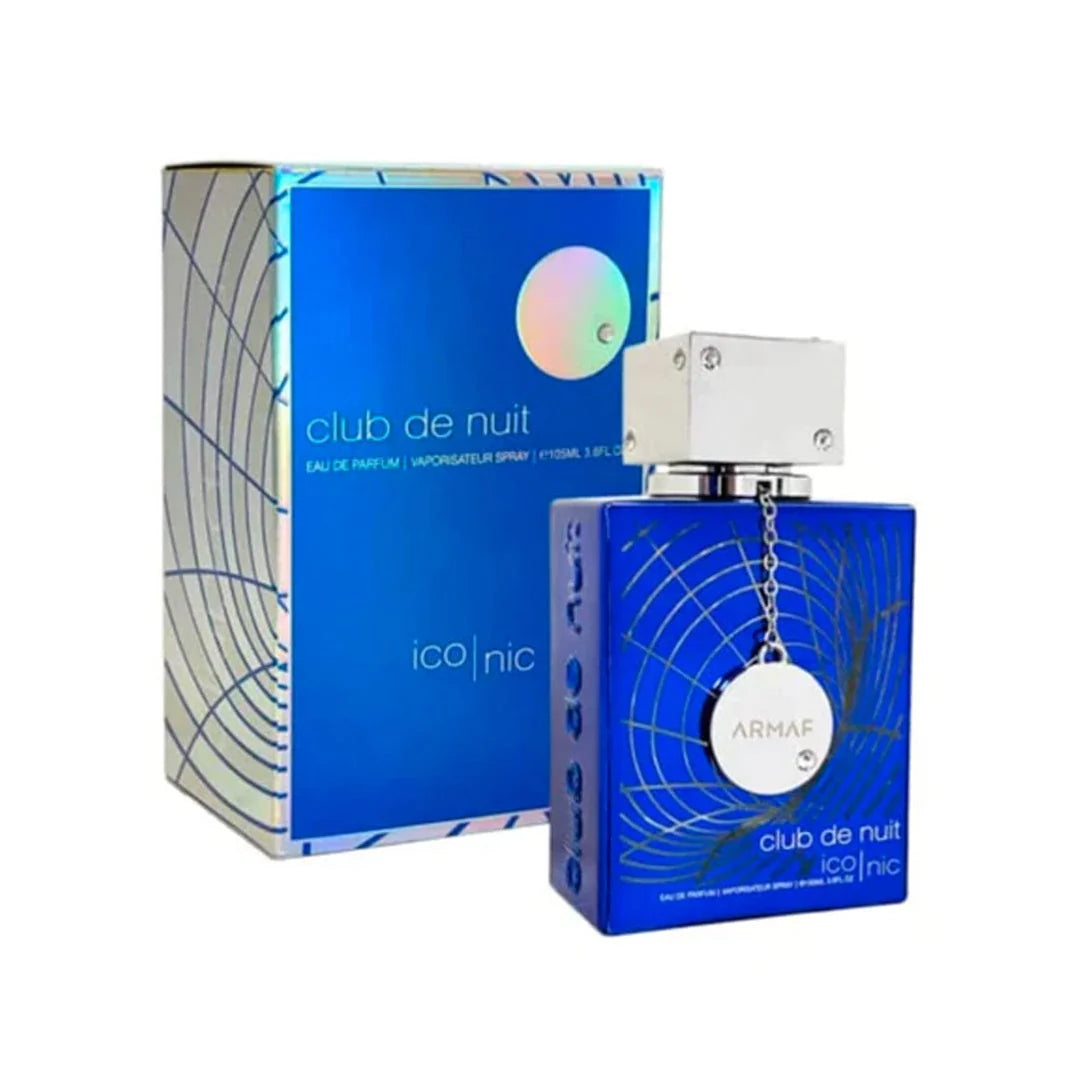 Club de Nuit Blue Iconic de Armaf es una fragancia de la familia olfativa para Hombres. Esta fragrancia es nueva. Club de Nuit Blue Iconic se lanzó en 2022. Las Notas de Salida son toronja (pomelo), limón (lima ácida), menta, pimienta rosa y cilantro; las Notas de Corazón son jengibre, melón, jazmín y nuez moscada; las Notas de Fondo son sándalo, ámbar, incienso, notas amaderadas, cedro, pachulí y ládano.