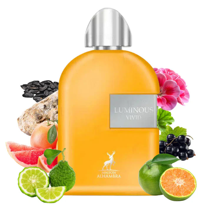 Luminous Vivid de Maison Alhambra es una fragancia de la familia olfativa Cítrica Aromática para Hombres. Esta fragrancia es nueva. Luminous Vivid se lanzó en 2025. Las Notas de Salida son toronja (pomelo), bergamota y grosellas negras; las Notas de Corazón son mandarina verde y vetiver; las Notas de Fondo son Madera seca, ámbar y madera de cachemira.